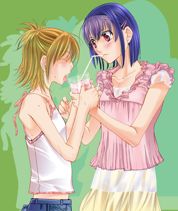 カタセミナミ様版ぬり絵 以前お友達が遊びに来てくれたときに月星ぬり絵をやってもらったのですが、その線画を置いておいたところカタセミナミさんが着彩して下さいました! び、美麗すぎます。カタセさんが塗ってくださった線画は私がきちんとクリンナップしたバージョンなのですが、それでもこの凝りようには驚きです、グラスやフリルの細部まで、あまりの美麗さに感嘆するばかりです。私の手元には作業原寸のデータがあるのですが、それを見たところでもう元が自分の線画とは思えないというか、スミマセン私自分では絶対こんな綺麗に塗れません(滝汗)。すんばらしい絵をありがとうございました。 「飲み物はシェイクっぽくしてみました」とのことです、紅愛とみのり服のカラーリングお揃いですよね〜、仲良しっぷりが嬉しいです。 クリックすると大きめの絵がでます。 ![]() 「ぺんぺん草くらぶ」カタセミナミ様 |