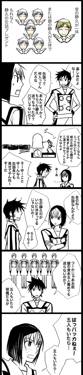 さんの漫画「金の静久 銀の静久」を読んでうっかり思い付いたネタ。ちなみに内容とは全くリンクしておりません、字面に対する単なる妄想です。